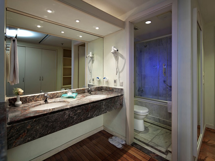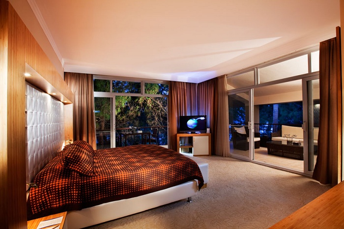 18 Terrace Suitе Rooms (52 кв.м.) - двухкомнатный номер состоит из гостиной и спальни с межкомнатной дверью. Все номера с ковровым покрытием, в спальне одна двухместная кровать, в гостиной - диван, есть рабочий уголок, 2 телевизора, спутниковое телевидение, центральный кондиционер, мини-бар, телефон, электронный сейф, балкон. В ванной комнате ванна с гидромассажем и гибким душем. Номера с видом на море, на широком балконе расположены шезлонги и комфортные кресла. Максимальное размещение - 4 человека.