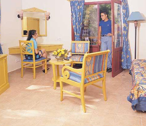 Номера в отеле очень разные и неравноценные, кому как повезет. Повезет - будет не на первом этаже и с видом на море, но были и полуподвальные какие-то номера, очень темные и окно в окно. У меня был такой средненький номер - первый этаж, вид в сад, но светлый. Официальная доплата за вид на море - 20 баксов в сутки. Я не стал доплачивать, так как в номере только ночевал. В номере все работало, было чисто, хотя мебель и сантехника староваты. Уборка каждый день, полотенца меняли каждый день, постельное белье - раз в три дня.