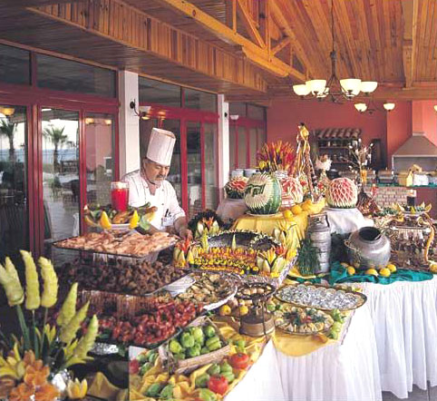 В этом году еда отвратительная. Одна соя, котлеты замороженные, при вас достают из коробок и тутже жарят. Я дома такое не покупаю. Постоянно одна рыба, она присутствует везде, жареная, пареная, с уксусом и бог знает с чем навороченная. Салаты, что из нарезанных помидор и огурцов не доели в завтрак, их порежуть по-мельче, добавять лук и еще что-нибудь, приправять острым чем-нибудь и на обед. Из мяса за две недели один раз была шаурма из курицы, а так постоянно индейка соевая, что не проглотишь без воды (сухая) и иногда курица. Гарниры, только рис и макароны, которые приправлены острым соусом, ешь а во рту жжет. Два раза был картофель порезанный на куски и обжаренный в кожуре (по-виду картофель старый). Напитки, да в изобилии, но ощущение, что разбавлены они еще раз водой, три дня в баре не было соков, зато водка, джин, коньяк и т.д. местного производства - рекой, хоть упейся, а ребенок пускай плачет от того, что хочет пить. Из фруктов за две недели, что я была - один арбуз, имейте в виду, что для отеля Sea Gull в Турции кроме арбузов больше из фруктов ничего нерастет. От арбуза у 25% отдыхающих было расстройство желудка и на сутки отдых был испорчен, я сама также на этом пострадала. Приходилось выходит за территорию и покупать себе фрукты (виноград, персики, яблоки они там от 3$ до 4$ за килограмм).