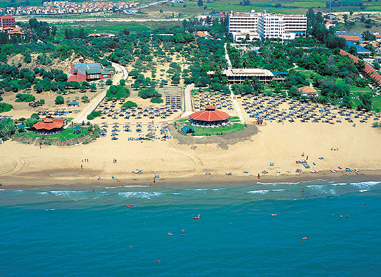 в 55 км от аэропорта г. Анталии, в 9 км от г. Сиде, в 2 км от поселка Чолаклы, на самом берегу моря.