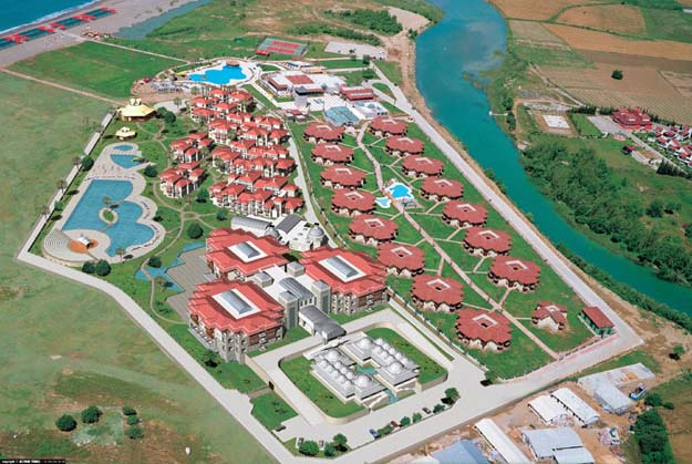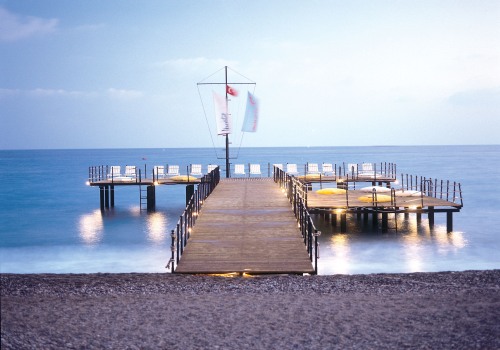 в 75 км от аэропорта города Анталья, в 15 км от г.Сиде, в 14 км от г. Манавгата, в районе Кызылот, на самом берегу моря.