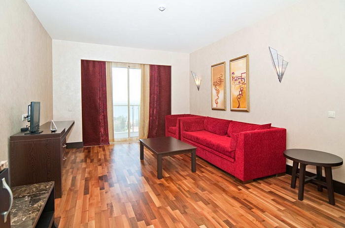 204 Standard Rooms (32 кв. м) - в спальне ортопедическая кровать (2 односпальные кровати или одна двухспальная), телевизор с диагональю 26 дюймов. С видом на море. Максимальное размещение - 3 человека.