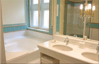 Элегантные номера оформлены по современным стандартам. Каждому номеру присущ свой характер - в одном есть мезонин, в другом индивидуальная терраса, или, кроме того гостиная; ванная выполнена в мраморе или фаянсе.