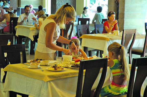 | Отель как отель красивый и развитой со всей инфраструктурой. Дорого от аэропорта до отеля занимает с обязательной остановкой около 2,5 часов. мы прибыли в отель в 12 часов дня. зерегистрировались на ресепшене, но номеров свободных не было ( были но были еще готовы для постояльцев). Одели браслеты и предложили пройти в главный ресторан пообедать. Отобедав вернулись на ресепшн где буквально в течение 5 минут нас всех распределили по номерам. нам с женой и детьми достался номер сбоку здания с видом и на море и на апельсиновый сад. в номере все было и все работало, единственное жена говорила что фен слабоватый по мощности. минибар обновляли ежедненвно (2 сока, 2 минеральные мал.бутылочки воды, и одна бут.1,5л негазиров.воды - чего нам вполне хватало). тем более что в номере мы находились исключительно для сна, переодеться, отдохнуть часок после обеда ибо на улице в обед очень жарко. полотенца меняли каждый день. главное его бросить у себя в номере на пол. белье за неделю нам не поменяли. да оно и не было грязным. дома ведь меняешь его как раз один раз в неделю. наши друзья более привередливые так они 2дол. на кровати оставили так им и меняли белье и лебедей всяких лепили. это вообщето видимо какие то засранцы так гадят а потом требуют чуть ли не ежедновную смену постельного белья, но это так к слову. и совет не оставляйте деньги и цен.вещи (золото и др.хрень на тумбочках) для этого у каждого в номере есть сейф бесплатный. Просто как нам говорили турки считают что коль лежат деньги на столе или тумбочке значит это чаевые. а так никто ничего не ворует. в это время отель был заполнен на 70-80%. примерно 40% русскоговорящие (СНГ),40% немцы и голандцы, остальное турки. все приветливые, хотя и не очень что немцы и общительные. питание нормальное на убой. выбор очень широк. главное внимательно читать название блюд и неспешить в выборе. еды всем хватает и если что закончилось то непременно дабавят. вино красное и белое отличное, но белое немного тяжелое, но на вкус и цвет приятелей нет, водка - ну водку надо вообще дома пить, а там напиток, а еще если и льда наложат так....... соки? я не знаю что за балоболы пишут о соках типа Юпи! отличные соки и апельсиновые и гранатовые и клубника - всегда выбор у автомата холодильника минимум 4 вида, также как и на территории всей - на пляже, у бассейнов и минибаров. тоже самое об автоматах с различными и вкусными видами кофе и чая. я лично объедался, особенно различными десертами и сладостями. и очень вкусные и сладкие апельсины, сочные просто прелесть. у нас они какие то как суховатые. единственное чего не было из фруктов клубники, персиков - но и без этого другого хватола с лихвой. по поводу обслуживания официантов. хочу сказать одно - ребята старались, но вы поймите когда полный ресторан а он вмещает около 1200 чел-к то скока нужно официантов чтоб каждому поднести напитки и быстро унести и убрать стол. ну это занимало около 5-10 минут. поэтому когда было в падлу то пользовались услугами официантов в деле напитков, а так проще сам подошел к баченку с вином взял поднос и попросил бокалов скока захотел и налил себе с краника и принес. тоже самое касается и соков и кофе. и сидишь себе спокойно то ли ужинаешь, то ли обедаешь, то ли завтракаешь. у нас и друзей с этим небыло проблем. просто кто хочет чтоб ему все подносили и одно место целовали то тот пусть еде