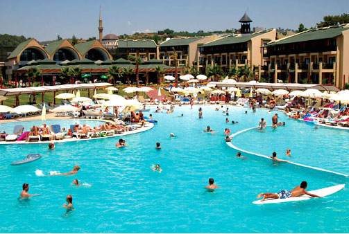 | Замечательный тихий семейный отель. Расположен между двумя поселками Окуджалар и Авсаллар. Территория большая, очень ухоженная и зеленая. Гостей размещают в небольших трехэтажных корпусах, большинство номеров выходит на море.Очень оригинальная архитектура домиков, соедиененных лестнтцами и переходами создает иллюзию лабиринта, в котором невозможно заблудится. Вместе с тем, нет ощущения нагромождения зданий. Сервис на очень высоком уровне. Персонал по русски практически не говорит,кроме дежурных фраз, однако, при минимальном знании английского проблем у вас не возникнет. Персонал доброжелательный, различия по национальному признаку между гостями не далают, одинаково обсдуживают всех, и немцев, и русских, и итальянцев, и поляков. Питание очень разнообразное и на любой вкус. Есть детское меню (на ужин). Много мяса, рыбы, овощей, фруктов, сладкого и десертов. Для желающих работает снэк бар рядом с бассейном, где днем можно поесть гамбургеров, картошки фри, макарон, салатиков. Отдельно стоит беседка, где целый день делают национальные лепешки. Для особо "голодающих" в 12 ночи - поздний ужин. Номер большой, просторный. В разных номерах - где ковролин, где плитка. Все номера дабл+1. В номере телевизор, индивидуальный кондиционер, мини-бар, два кресла, журнальный столик, просторный шкаф с вешалками (вешалок много). бесплатный сейф. Санузел совмещенный, вместо душевой кабинки - ванна. убирают номер ежедневно, убирают хорошо. Каждый день ставят новую бутылку питьевой воды, вне зависимости выпил ли ты предыдущую. Все номера с балконами. Где-то балконы большие, где-то поменьше. На балконах сушилки для вещей. Большая профессиональная анимационная команда не дает скучать ни детям не взрослым. Для взрослых целый день развлечения и вечером различные шоу.Детям всех возрастов найдется занятие по душе. Для детишек каждый вечер - мини-диско. В бассейне есть три горки, разной категории быстроты. От медленной до очень быстрой. Бассейн огромный, глубина разная. Для малышей маленький бассейн со своей горкой. Пляжей - 3. РАсположены на косе, выходящей в море. Лежаков всегда хватает. Пляж песчаный, вход в море песчаный, но попадаются камни, но не острые. Метров 50 глубина не больше 1,50. Для желающих попрыгать - есть возможность это сделать с пирса. На пляже различные водные развлечения - банан, ватрушка, скутер. В целом - очень хороший отель для семейного отдыха, соотношение цена и качество - оптимальны. |