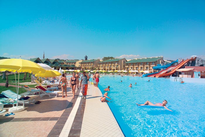 | Понравился тем, что большая територия, он изолирован от других отелей, просто изолирован. Никого другого там быть не может, даже браслеты, которые обычно одевают на руку для иденификации, там небыло!!! Охрана была только на входе, потому что этот отель ограждён естественными приградами - скалами. Это огромный плюс. Кухня очень хорошая, разнообразная, каждый день, на ужин, на открытом воздухе что-то жарили (порой даже в двух - трёх местах). Днём в специальной беседке турецкая бабушка жарила лепёшки с сыром и картошкой - вкусные. Снэк бар богатый. На выбор и салаты и фрукты и гамбургеры и какие то нтересные лепёшки. В главном зании в баре отличный турекий кофе. Единственно, что в ресторане a la carte вместо обещаной итальянской, была рыбная и турецкая кухни (по секрету скажу, мне в гарнир - рис, попалась муха..., шев повар когда увидел, вернувшись на кухню, так начал орать на своих, что чуть ресторан не развалился..., потом тут же принесли замену блюда, бутылку вина, личные извенения шев повара, много фруктов...) Шев повар говорит по-русски, хотя этнический турок. Пляжи прекрасные, есть мелкий, есть поглубже, а есть вообще экстремальный на самом полуострове, где скалистая порода. Небольшое возвышие из скальной породы, потом терраса, погружённая под воду на 2 - 3 см. и вода, сразу глубина метра 4! Мой ребёнок был в восторге. Там рыб столько было и большие и малнькие. Там ещё есть достаточно высокий пирс, с которого можно нырять. На самом деле, пляжей там больше чем два – мы насчитали 4. Из приезжих много турок, славян (чехи, словенцы, поляки, сербы) были немцы, несколько самолийцев!, даже один сириец был, две американки!!, вообще народу много разного. Правда, тем, кто любит общаться с другими туристами, но не знает другого языка (нем и англ.) то там для Вас будет скучновато, т.к. русских было мало (я заметил четыре семьи). Там ещё классная турецкая баня, в главном здании (сама баня бесплатная, но можно нанять банщика и массажиста, по турецким меркам дороговато 50€). Хорошая сухая сауна, турецкая сауна, хамам, Небольшой прохладный басейн. Даже фитнес клуб был нормальый (тренажёры работали, правда не все). Вообще оригинальные здания где расселяют туритов - сам проект интересный. Но вот номера только на 4. Кондишэн гнал тёплый воздух, после обращения, поменяли блок (правда на третий день) кондишен заработал нормально. По-русски (кроме шев повара и официантов с парой заготовленных «добрый вэчэр» «что будэм пич?») практически никто не говорит. Но, для тех, кто хоть немного зает англ или нем это не проблема. Хотя там была семья из россии, они совсем небелмеса и ничего, на жестах справлялись. Да, там ещё аниматор была славянка – отлично говоила по-русски. К плюсам ещё горки, большой бассейн, почти каждый день приезжали шоумены на вечернюю развлекаловку. Приезжал гитарист. Пел шлягеры (анг, Франс, нем, даже спел очи чёрные со страшным акцентом) нам с супругой оч понравилось. Ребёнку тоже было чем заняться. Аниматоры с детьми целый день и вчером 6 - 10 песен улили - танцевали, кричали, играли - весуха. Мой сын нашёл там себе друзей (немчиков, поляков) как то уж объяснялись на ломаном англ и жестами – смотреть прикольно – обхахочишся. К минусам – далековато до населённого пункта Авкслар, а торговый ряд в отеле дороговат. Можно было поехать на бесплатном автобусе в шоп тур. Корт теннисный нормальны