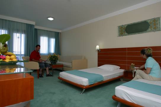 | Хочется кричать, люди не портите себе долгожданный отпуск. Этот отель только для турков, их там любят и лелеют, а нас просто ненавидят. Что не день то проблемы. То шезлонг стащат, который ты в 7 утра занял. Придешь позже будешь загарать стоя на газоне. Уйдешь купаться, а тебя полотенце умыкнули вместе с лежаком. Так ведь это не все, поужинать спокойно не дадут. Не дай бог занять столик, который турку понравился, только отлучишся а за ним уже кто - то сидит и челюстями шевелит, делает вид, что это ты с луны свалился, а он тут с утра сидит. И самое главное администрация вдруг забывает все языки мира и помнит только свой родной. Неможет понять, что такое случилось и чем ты иноземец недоволен. Граждане туристы вычеркните этот отель из списка, и отдыхайте лучше на даче, чем портить себе отпуск. |