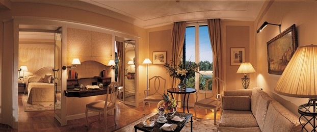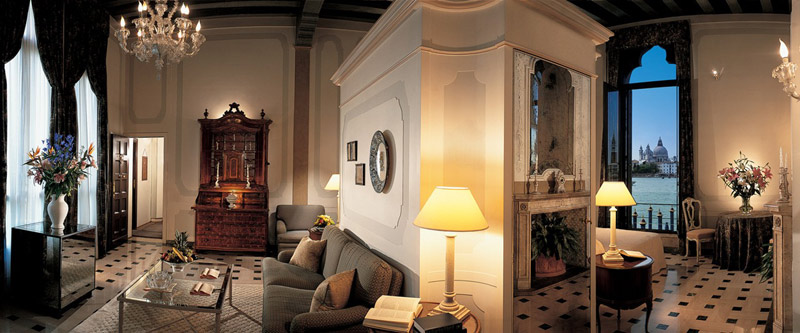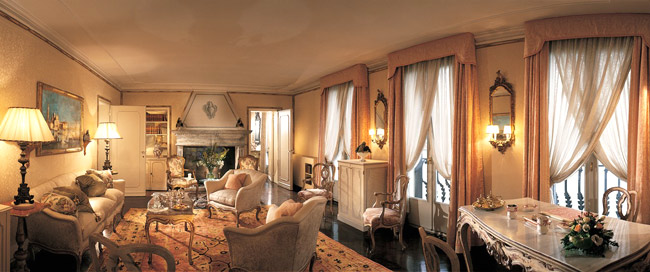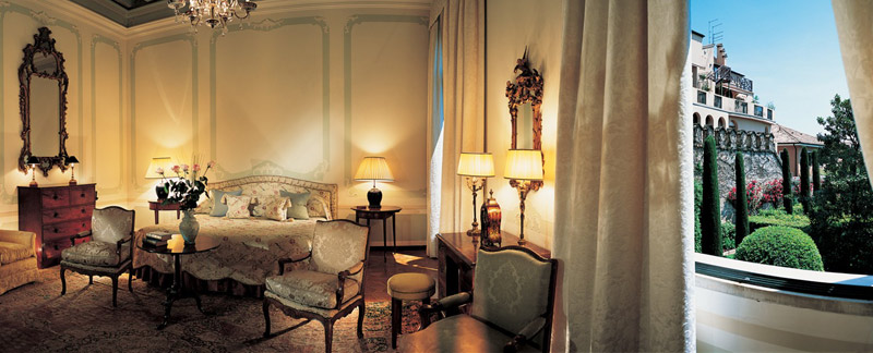 1 Dogaressa Suite - номер назван в честь первой дамы Венецианской республики Догарессы Лореданы Мочениго Марчелло, хозяйки роскошного сада, типичного для эпохи Возрождения, существовавшего на острове Джудекка в 1500 году. По соседству с садом возвышался дворец Вендрамин. Находясь в Dogaressa Suite возникают ассоциации с живописью Каналетто, который передал во всех оттенках цвета поэтику Площади Сан Марко в обрамлении впечатляющего дворца Дукале и великолепной набережной Рива дегли Скиавони