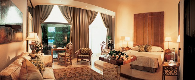 1 Palladio Suite — с изысканным интерьером в венецианском стиле со стеклом Мурано, мраморной мозаикой на полу, расписными потолками, окнами по всему периметру комнат, через которые открывается чудесный вид на лагуну. В номере — просторная гостиная с обеденной зоной, 2 спальных комнаты, 3 ванных комнаты, терраса с джакузи (4,5 м), окруженная жасминовыми кустами. Услуги дворецкого, прогулочный катер