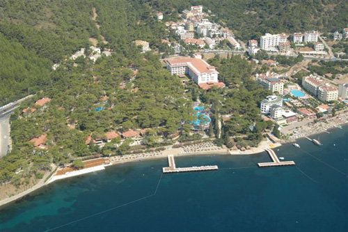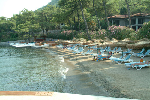 на самом берегу моря между Мармарисом и Ичмелером, в сосновом лесу, в 90 км до аэропорта г. Даламан, в 5 км от г. Мармарис, в 3 км от пос. Ичмелер.