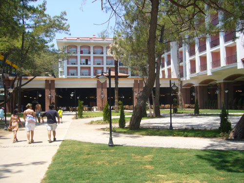 | Отдыхали с женой в CLUB TURBAN с 03 по 12 августа 2007 года. Кто хочет поехать в этот отель - сразу приготовьтесь к суровой борьбе за номер. Мы заказывали и оплачивали номер «family» в коттедже («Village»), реально нам дали лишь номер стандарт, и то только на второй день. Разницу в деньгах не вернули. Мы ездили через ТЕЗ-ТУР, но представитель от Тез-Тура(Игорь) не только не помог, а наоборот помешал - дал нам ложную информацию. При нас вселялась еще одна компания из России - 5 человек, они оплачивали отдельный коттедж, а их распихали по двум разным номерам в основном здании. Ну кто берет номер «стандарт» в коттедже, в принципе рискует только тем, что его поселят не в коттедже, а в основном здании, а там в туалетах такой запах канализации, что особо не до отдыха. А вот кто хочет большой номер на семью, тем лучше наверное подумать о другом отеле. На пляже мест для постояльцев CLUB TURBAN нет, зато множество каких-то левых людей (турок и англичан) без браслетов на руках. Местный персонал продает места на пляже, причем это им выгодно, так как пришлые платят за напитки на пляже, а «свои», с браслетами, берут бесплатно («все включено»). Охрана отеля в доле, поэтому чужих с пляжа никто не гоняет. Из спорта есть: одна волейбольная площадка, два стола для настольного тенниса, один теннисный корт. ВСЕ. Ничего иного нет в принципе. На пляже можно арендовать скутер, но 50 долларов за 15 минут катания на водяном мотоцикле - цена не очень разумная, тем более для Турции. Территория отеля правда хороша - сосны, белки(как минимум одну мы несколько раз наблюдали). Питание скудное, выбор небольшой, сладкое малосъедобно, выбора мясных блюди практически нет, курицу и рыбу в этом отеле готовить не умеют - есть невозможно. Много фруктов, но это в августе - кто отдыхал в июне, жаловались, что фруктов не было. Местное население говорит, что хозяин отеля жадный, экономил и экономит на всем. Хорошая слышимость в номерах - если вам попадутся шумные соседи, в номере лучше не сидеть. В целом если Вы мазохист, то отель Вам понравится. |