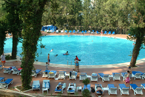 | Была в Мармарисе, Турбане 09-19.06.09г. Первый раз отдыхала в Турции, очень рада, что попала именно туда. Поехала одна, вся поездка прошла как по нотам: из Минска без задержек в Даламан, там встречали Ривьера-Интурист, отдельное спасибо Диане, Юле, Павлу, гиды-умницы, такие доброжелательные, внимательные, интересные ребята. Правда в отеле произошло перебронирование, так что первые сутки провела в другой 5-ке, Азур-Маритим, даже рада, что побывала там, это вообще мечта идиота: такой навороченный, жутко респектабельный отель для иностранцев, хотя думаю русским было бы скучновато. Шведский стол просто потряс, соки, мед в сотах, бекон за завтраком, клубника, черешня, всякие там морские гады, разное мороженое…все что пожелаешь, номера, бассейн как картинка. Перевезли быстро и организованно, поселили меня в коттедж. Номер хороший, кровать удобная, зеркала большие, вид на парк. Сосны, белки-красота. Телики плоские, 3 русских канала. Все работало исправно. Отель очень семейный, семейные пары, мамы, бабушки с детьми. Конечно много русских.Для детей неплохая анимация.детское диско, дают мороженое. Пляж нормальный, просторный, лежаки с утра занимают, но место найти можно, а после обеда полно свободных лежаков, народ перебирается к бассейну. Бары на пляже и у бассейна нормальные, очень хороший бар с живой музыкой поют европейские хиты, даже пару русских песен, до 2х часов. Турецкий кофе давали в баре где бильярд в полуподвале под рестораном. Анимацию не люблю поэтому почти не видела, но народ ходил активно. Так, художественная самодеятельность, гораздо хуже чем в 4-ке в Египте. Еда в ресторане понравилась, много чего готовили на гриле, очень вкусная индейка и говядина, всякие так кальмары и рыбка тоже ничего. Всегда фри, куча овощей, салатов, есть что выбрать детям: пюре, тушеное мясо, курочка. Фрукты же – яблоки, апельсины, какие-то желтые маленькие сливы, дыни и арбузы, это без ограничений. Вино из бочонков, так ничего. Пиво, как везде, вероятно, никакое, мы компенсировали привезенной из России сушеной рыбкой. Вкусные блинчики на завтрак, разные джемы, мед, выпечку народ хвалил, я не ем, выглядело все аппетитно. Познакомилась с земляками из Минска и девушками из России, было весело и интересно вместе. Дети их самостоятельные и такие умницы, даже маленькая девочка, никто не напрягал, наоборот, только положительные эмоции, гуляли, играли, веселились вместе. Съездила на 3 экскурсии- в Памуккале, мечтала о ней давно, Дальян-каунас и по островам. Все понравилось, хотя немножко утомительно, но лучше, чем лежать на пляже просто так. Море между островами чудесное, то голубое, то зеленое, очень красиво, советую съездить. Вообще Мармарис очень приятный город, компактный, симпатичный, очень красивая природа, сосны, горы, если не бывали в Турции, советую начать отсюда. |