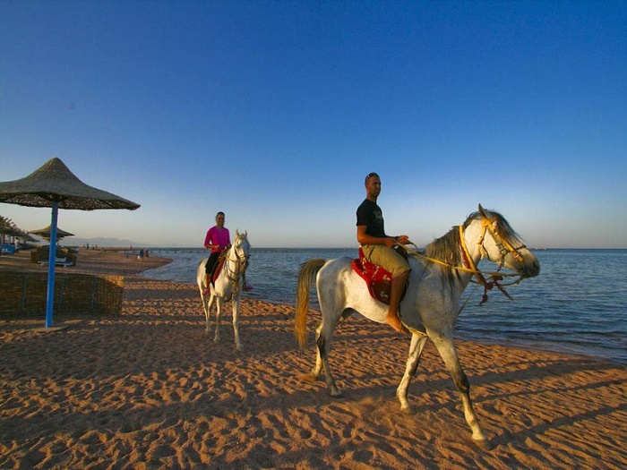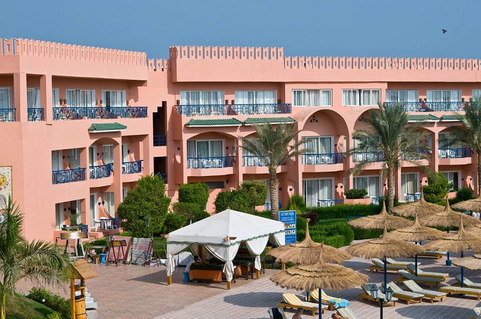 на самом берегу моря, на золотых песках бухты Nabq Bay, в 12 км от аэропорта Шарм Эль Шейха, в 20 км от бухты Naama Bay.