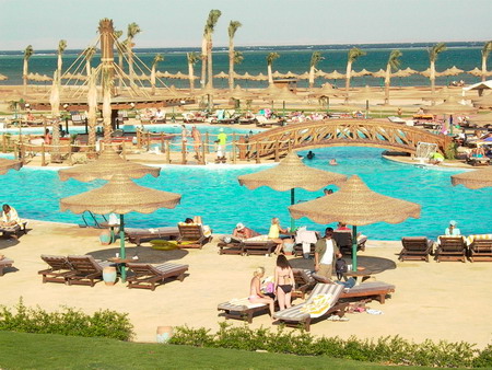 | Привет Всем!Отдыхали вместе с женой в 2008 году в феврале.На ресепшене бедуины пытались содрать по сотне баксов.Тут главное вовремя взять за хобот тургида пока не смылся и высказать ему все с напором,что ты думаешь об этом хамстве.Незабыть припомнить,что напишешь его начальнику и т.д.Хотя он будет делать вид,что не понимает,но этот номер не прокатит,если не сдать позиции.Все они прекрасно понимают по-русски.В результате- номер свидом на море на втором этаже.Другие заплатили и в результате- либо бунгало,либо номер свидом на бассейн. Уборщику номера - 5 фунтов в день и 150 грамм текилы из дьюти-фри- и все проблемы решены!Каждый день постель заправлена по новому-с фигурками из полотенец и покрывала,чистота наводится идеально.Ни в коем случае не баловать баксами!Отделка номера-едва тянет на тройку. В ресторане надо садится за понравившийся стол-а не за тот,который будут впихивать.Мы садились у окна с прекрасным видом.А наши соотечественники-внутри зала в самом углу (наверно им там нравилось).Англоязычные ведут себя по-хамски вульгарно.Но к нам за свободные столики не лезли.Питание в ресторане-неплохое.Наличие рядом красивой молодой жены-только плюс.Дошло до того,что нам оладьи повар давал вперед-с пылу,с жару минуя впереди стоящих немцев и англичан,несмотря на их протесты. Выпивка - так себе (без восторга).Лучше везти с собой из дьюти-фри.Главное всем дать понять,что россияне не денежные дойные кошельки (не быть слишком щедрым и не быть слишком жадным). |