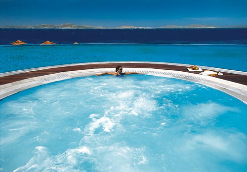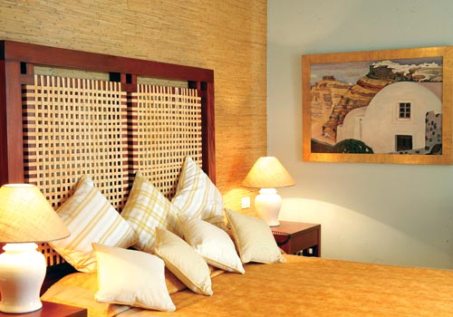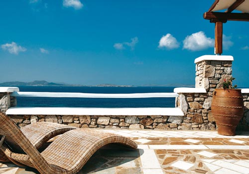 Во всех номерах, оборудованных по последним технологиям, — элегантные интерьеры в теплых насыщенных тонах, с удобной мебелью, арками и украшениями в стиле острова Миконос, балконами и террасами с чудесным видом на море, остров Делос и окружающие ландшафты.