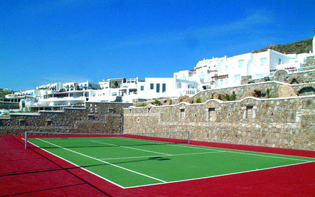 на западном побережье греческого острова Миконос, входящего в архипелаг островов Киклады, рядом с пляжем Aghios Ioannis, в 4,5 км от центра города Миконос и в 4 км международного аэропорта.