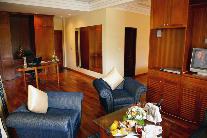 1 Presidential Suite - номер с 2 спальнями, 2 ванными комнатами, просторной гостиной со столовой зоной, джакузи в главной спальне, гостевого туалета, мини-кухни и просторного балкона.