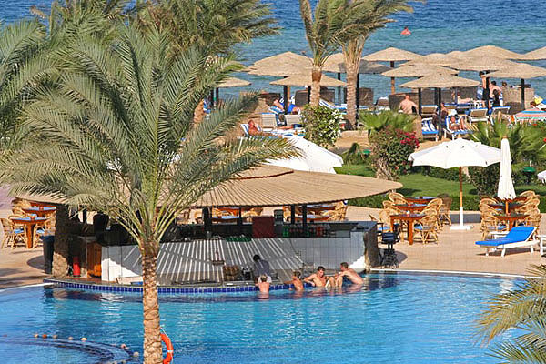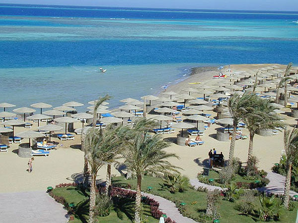 | Это была наша первая поездка в Египет. Сравнивать могу только с Европой (Испания, Франция и т.д.) и с одним проведенным днем в другом отеле-аквапарке в Хургаде. Но все по порядку. Самолет задержали, и мы прилетели в Хургаду в 23:00. Тем, кому нужна виза, она стоит для каждого 15 $ и оформляется прямо в аэропорту в зале прилета. Поскольку мы прилетели поздно, а с нами еще 2-3 рейса, то ждать пришлось минут 30. Кстати,еще нужно заполнить что-то типа миграционной карточки, нам их роздали еще в самолете, но также их можно получить и в аэровокзале. В это время работали только 2 турникета с паспортным контролем из 6, однако потом ленивые чиновники открыли еще один, предваритльно предупредив стоящих в очередях прилетевших египтян и арабов на своем языке, так что они оказались первыми, а уж потом на английском всех остальных. Такой у них менталитет, и это правильно! Не так, как у нас: все наоборот! И вообще, заработать и выкачать деньги они стараются с иностранцев, а не со своих! Прошли контроль, получили багаж, нашли представителя своей турфирмы и стали ждать трансфера в отель (20 мин). От аэропорта до отеля ехать тоже минут 20-30. Приехали поздно. Зарегистрировались и получили ключ. Вещи помогли принести в номер. Я сразу пытался дать 10€ на рецепшине, но не взяли! Номер дали с левой стороны в конце основного корпуса в отдельно стоящем здании, их там два и одно еще справа, но там, кажется, для своих. Номер оказался маленьким, но с большим балконом и видом прямо на море, да еще и с персональным кондиционером. Ванная с туалетом не в номере , а напротив по корридору. Поэтому не советую брать номера с 705 по 715. Нас обещали утром переселить в другой номер, что и случилось. Не торопитесь с выбором и не спешите платить взятку, хотя я после переезда и дал 10€. Запомните: до обеда солнце светит на левое крыло,а после - на правое. Мы сначла хотели номер справа на первом этаже, но получил слева, о чем не жалею. Вышел через балкон - и через 7 шагов в бассейне, тут же и бар, до моря метров 50. Это номера с 160 по 169. В основном корпусе номера довольно просторные, с ванной и туалетом и довольно эффективным общим кондиционером. Рассположение отеля просто великолепное, внешнее состоиние и территория тоже. А вот сами номера, в сравнении с европейскими, на 3+ - 4, но для Египта это 4+ - 5. Номера немного изношены, особено ванная комната, но мы ехали загорать и купаться, а не сидеть в номере. Самое главное заключается в том, что любые ваши замечания и просьбы стараются выполнить максимально быстро и качественно. Возле рецепшина сидит русскоговорящая девушка, которой мы просто так рассказали о состоянии ваной, а на следующий день все промежутки между кафелем были замазаны белой затиркой, что очень удивило! Номер убирали каждый день, очень хорошо, независимо от того, оставили чаевые или нет. Территория и сам отель убирался и мылся круглосуточно. Молодцы! Питание тоже хорошее, хотя у меня, как у профессионального повара, были замечания. Если вы едете больше чем на 10 дней, берите с собой колбасу. Мы были 14 дней, и на десятый день заскучали по колбасе и селедке. Меню каждый день одно и тоже, с легкими комбинациями. Но выбор блюд был очень обширным. Блюда ориентированы на европейцев, но приготовлены с восточным вкусом и очень хорошо поданы! Из фруктов: бананы, апельсины, дыни, арбузы, финики, резанные яблоки. Огромнишый выб