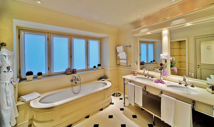 Suite Exclusive (45-47 кв. м) – спальня, отдельная гостиная. Интерьеры выдержаны в стиле Возрождения и обставлены старинной мебелью, ванные комнаты оформлены итальянским мрамором. В некоторых номерах терраса. Можно разместить 1 дополнительную кровать. Расположены в любом из трех зданий. Номер может соединяться с номером Junior Suite Top.