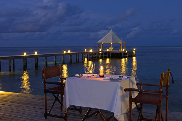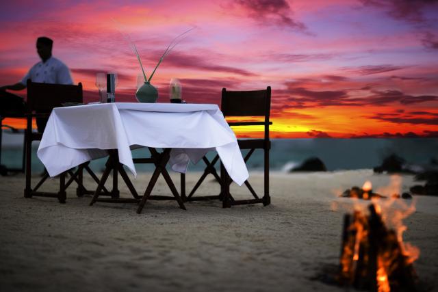 Гости могут заказать завтрак в постель, обед или ужин на вилле. В этом Вам поможет Ваш персональный дворецкий. Совместно с шеф-поваром ресторана, он также организует для Вас романтический ужин для двоих у бассейна или романтический завтрак, обед, или ужин на безлюдном белоснежном пляже острова, или на пляже необитаемого острова, у самой кромки воды.