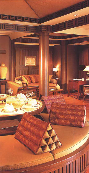 The Thai Suite (150 кв.м) — оформлен в традиционном тайском стиле, обставлен мебелью ручной работы, украшен предметами антиквариата, состоит из фойе, просторной гостиной спальни, гардеробной, буфетной комнаты, ванной комнаты, гостевой туалетной комнаты, выходит на реку