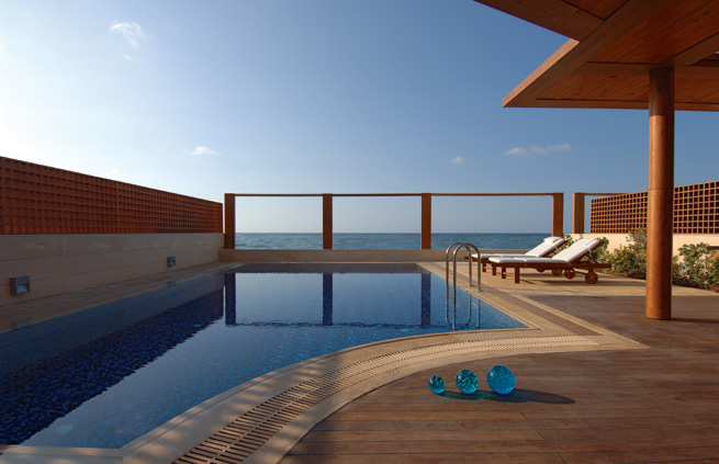 2 VIP Suites (52 кв.м., вид на море) - дополнительно - терраса (95 кв.м), частный бассейн (40 кв.м.). Представляют собой роскошные, отдельно стоящие бунгало с изящной мебелью, состоят из отдельной спальни и гостиной с рабочим уголком, где также можно разместить и ребенка на диван-кровати. В VIP-сьютах предусмотрена отдельная кабинка в ванной комнате с гидромассажем и душем «тропический ливень». Номера оборудованы дополнительно DVD-плеером и имеют рабочий кабинет.