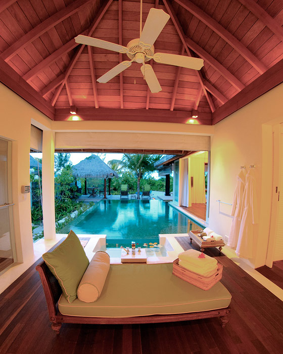 К концу прекрасного мальдивского дня гости отеля могут насладиться большим выбором роскошных терапий курорта, разработанных специально для того чтоб побаловать ваше тело. Команда профессионалов отеля обучены аюрведе и тайским искусствам. Все процедуры можно провести как в Spa-центре, так и в собственной спальне, на палубе или на пляже.