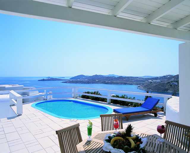 на острове Миконос, в 5 минутах езды от центра города Миконос, в 6 минутах езды от аэропорта, в 30 минутах полета от Афинского аэропорта.
