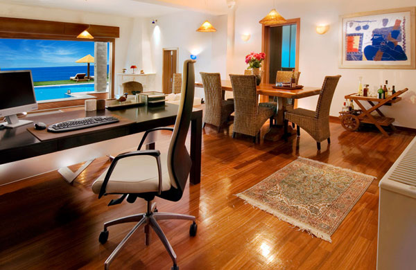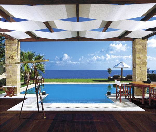 Во всех номерах — элегантные интерьеры, сочетающие современный дизайн и традиционные греческие мотивы: отделка из натурального дерева, мрамора и камня, тиковая и бамбуковая мебель ручной работы, мраморные камины, просторные террасы с собственными бассейнами, окруженные пышной тропической растительностью, из номеров открывается великолепный вид на лазурное море и соседний остров Кефалония.э