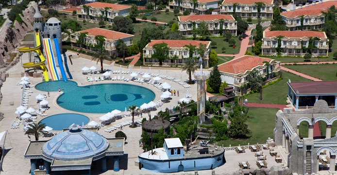 | вот только что приехала из этого отеля!сам по себе он не плохой,но на 5* не катит.как мы приехали,а нас было трое,нас посели в бунгало-family room.это было что-то.во-первых это бунгало было где-то около стройки и около забора,который выходил на улицу.забор был плохо сделан и кто угодно мог зайти.двери плохо закрывались,а значит могли украсть что угодно.во-вторых там ужасно воняло плесенью и мы задыхались.но больше всего нас убило то,что вторая комната-это двух ярусная кровать,стоящая в коридоре.да и то постельное белье было сырое.в бунгало было очень грязно и пыльно.сейф очень маленький и туда не поместился ноутбук.соседи рассказали,что они положили туда свои ценные вещи,а потом не могли его открыть,и таких случаев было много. нам не понравилось как нас встретили и мы просили поменять номер,но двя дня нам говорили,что номеров нет и кормили "завтраками".но все же нам поменяли,опять же на бунгало,но ближе к бассейнам,и там было все также,но чище и не воняло.мы и этому радовались.что касается еды-все очень вкусно.выбор огромный,фруктов множество,наелись арбузов,дыни,клубники,слив,персиков и абрикосов.территория большая,есть где погулять.море грязное,потому что впадает река.были одни русские,немцев несколько человек.анимации скучные.но в общем отель подходит для семейного отдыха,малышам особенно нравится.им там весело.у нас было ультро все включено,только где оно проявлялось? не понимаю.мороженое-платное,кукуруза-платная,попкорн-платный,сладкая вата-платная.не стоит переплачивать.турки на рынке сказали нам что это самый ужасный отель,не слушайте туроператоров,отель плохой!максимум 3*. |