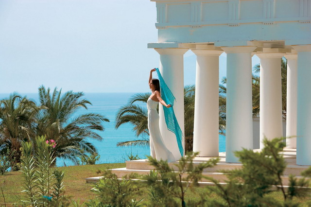 Элегантные белоснежные здания Grecotel Olympia Riviera Thalasso, выполненные в стиле классической греческой архитектуры, расположены на берегу лазурного Ионического моря, среди раскидистых пальм и благоухающего сада.