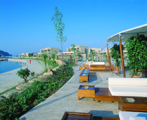 Во всех номерах — элегантные интерьеры в современном греческом стиле, с отделкой из дерева, мрамора, камня ручной работы, изящной мебелью, изысканными украшениями, балконами и террасами с прекрасным видом на море и гавань.