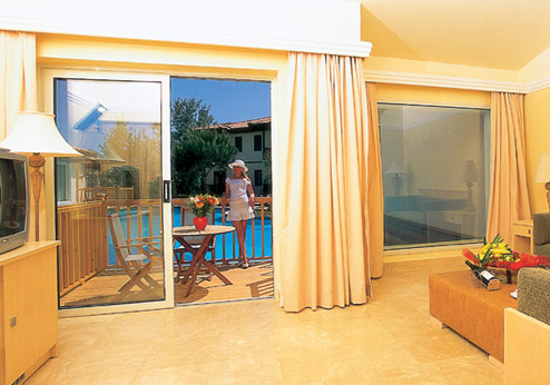 В номере: гостиная, спальня, 2 телевизора, 2 мини-бара, джакузи, выход к отдельному бассейну. Максимальное размещение 2+2 чел, площадь 52-55 кв.м.