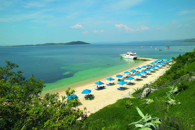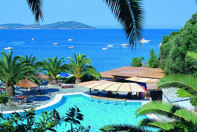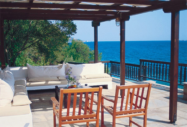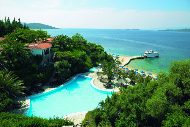 Small Luxury Hotels of the WorldОтель Eagles Palace расположен на холме над песчаным пляжем. Здание отеля, находящегося на зеленом Афонском полуострове, построено в византийском стиле. Совсем недалеко находится священная гора Афон, где расположена единственная в мире православная монашеская республика с исключительно мужским населением, которое уже тысячу лет живет согласно церковным канонам и в духе традиций византийских времен.