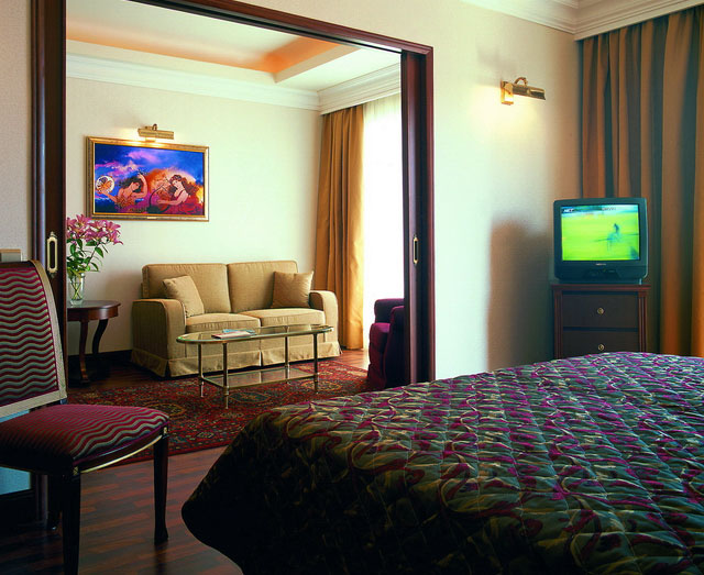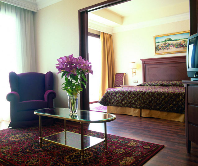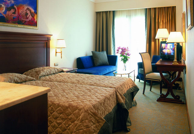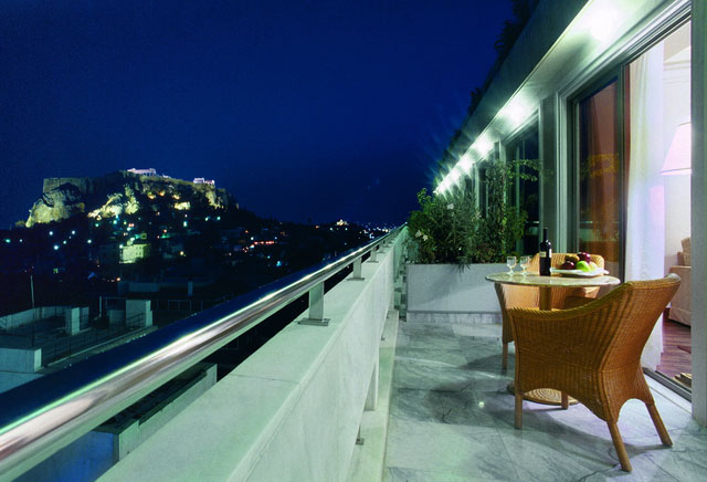 Во всех номерах — изысканные классические интерьеры в теплых тонах, с отделкой из натурального дерева, удобной мебелью, большими панорамными окнами и балконами с чудесным видом на Афины.