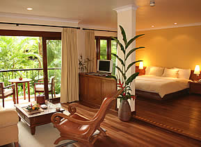 • Cahaya (Deluxe) (60 кв.м) — с видом на сад, гостиная зона отделена от спальни.