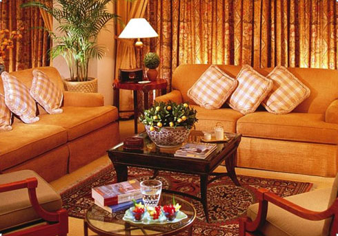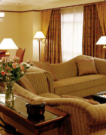Из окон просторных светлых номеров открывается панорамный вид на столицу. Номера декорированы предметами искусства и антиквариата, расписной посудой, оригинальными цветочными композициями, коврами ручной работы и элегантной мебелью.