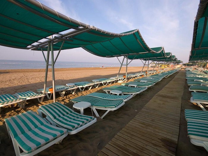 Пляж: собственный, песчаный. Есть VIP шатры. Пляжные полотенца, зонтики, матрасы, шезлонги – бесплатно. У бассейна: лежаки, зонтики, матрасы, полотенца – бесплатно.