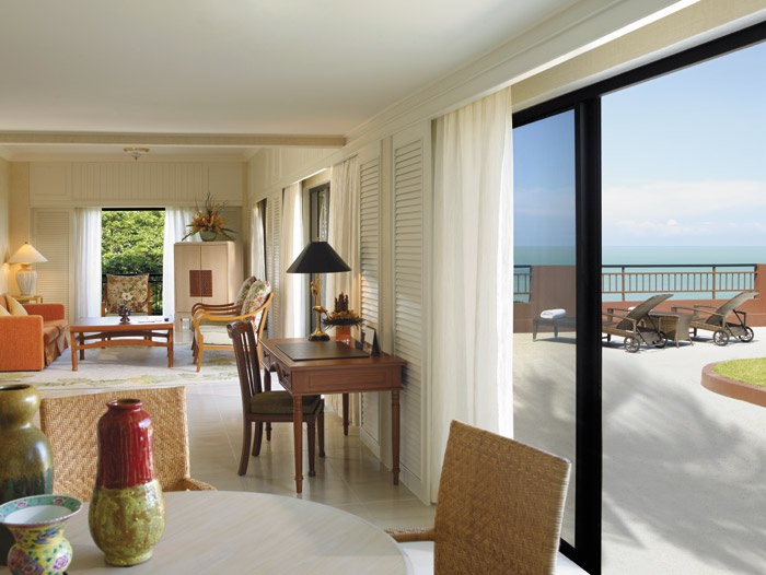 Penang Suite (105 кв.м.) - просторные и роскошные номера с видом на живописные сады и бассейны. В номере спальня, отдельная обеденная зона, гостиная / зона для отдыха, мраморная ванная комната с джакузи и отдельной душевой кабиной, частный балкон.