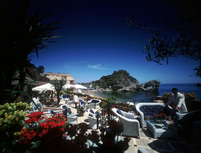 Роскошный отель стоит у кромки пляжа, на берегу бухты Маццаро. Выше по склону раскинулся очаровательный старинный городок Таормина: добраться до его центра можно на фуникулере. В отеле установлена информационная система, позволяющая гостям просмотреть свой счет на экране телевизора. Гости могут совершить экскурсию к вершине вулкана Этна или к знаменитому античному амфитеатру Таормины, расположенному всего в пяти километрах от отеля.Расположение отеля Mazzaro Sea Palace: