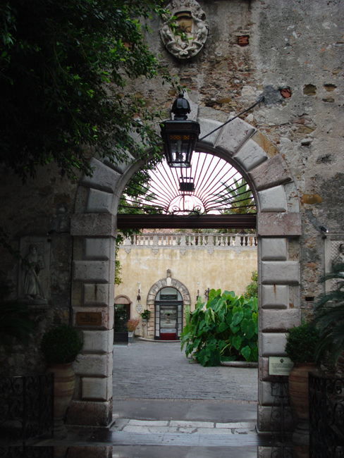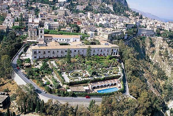 Этот исторический отель принадлежит к числу достопримечательностей курортного городка Таормина. Из номеров открываются захватывающие виды на залив Таормина, античный амфитеатр и вулкан Этна. Итальянские сады, сотворенные чарами природы и заботливыми руками человека: каскады цветов, кулисы сочных растений, увитые виноградной лозой стены, насыщенные экзотические ароматы. Неподалеку – центр городка с многочисленными бутиками и элегантными кафе. Бутик, расположенный в скриптории - помещении, в котором в далеком прошлом монахи терпеливо переписывали манускрипты и священные писания предлагает вниманию гостей отеля множество изящных предметов искусства и любые другие необходимые вещи - от пляжных аксессуаров и керамических изделий до гастрономических изысков - сицилийского мармелада, меда, сладостей, ликеров, вина и консервов.