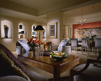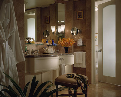 Royal One-Bedroom Suite (132-182 кв.м): номер расположен на 18-ом этаже отеля, в номере может быть одна (132 кв.м) или две (182 кв.м) спальни. Первая спальня с кроватью king-size, вторая спальня – с кроватью king-size, гостиная с диваном, журнальным столиком, CD-плеером и столовой зоной, гостевой туалет, из каждой спальни – выход в собственную ванную комнату с двумя раковинами, ванной, душевой кабиной и отдельным туалетом