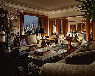 Presidential Suite (260-360 кв.м): расположен на верхнем, 19-ом этаже отеля, в номере может быть одна (260 кв.м), две (310 кв.м) или три (360 кв.м) спальни. Первая спальня с кроватью king-size, вторая спальня – две кровати twin, третья спальня – кровать king-size. В каждой спальне – телевизор с CD-плеером, сейф, вход в собственную ванную комнату, большая гостиная, рассчитанная на 15 человек, с полом из черного мрамора, столовая на 8 человек