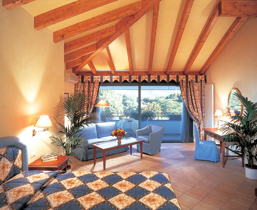Двуспальная кровать или две раздельные кровати, гостиный уголок, вид на парк и бассейн, балкон.