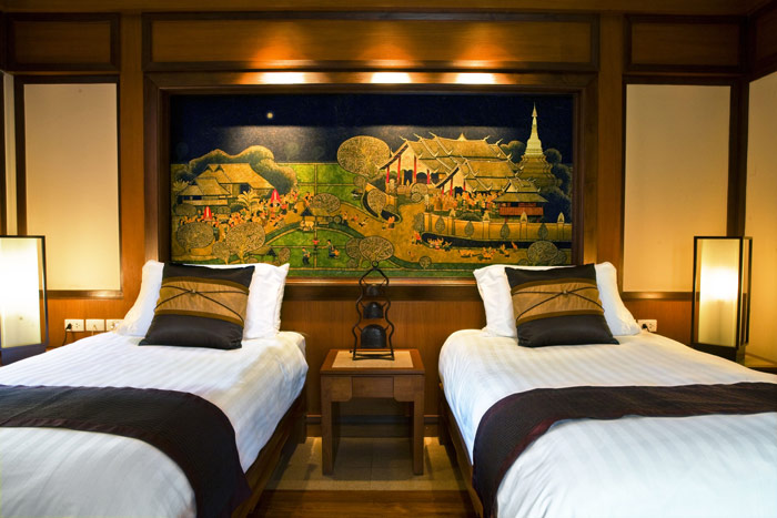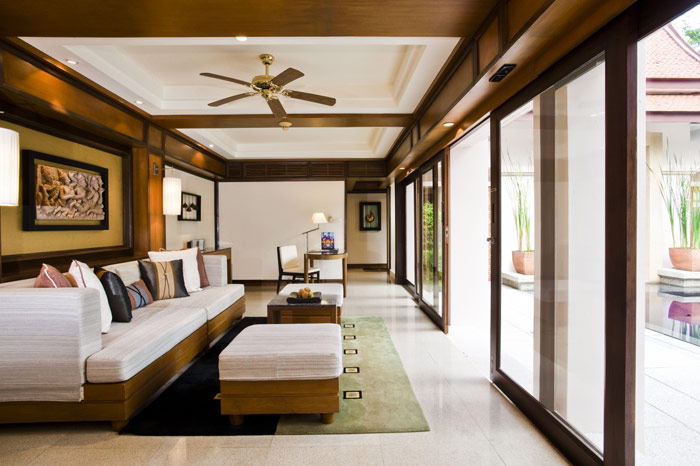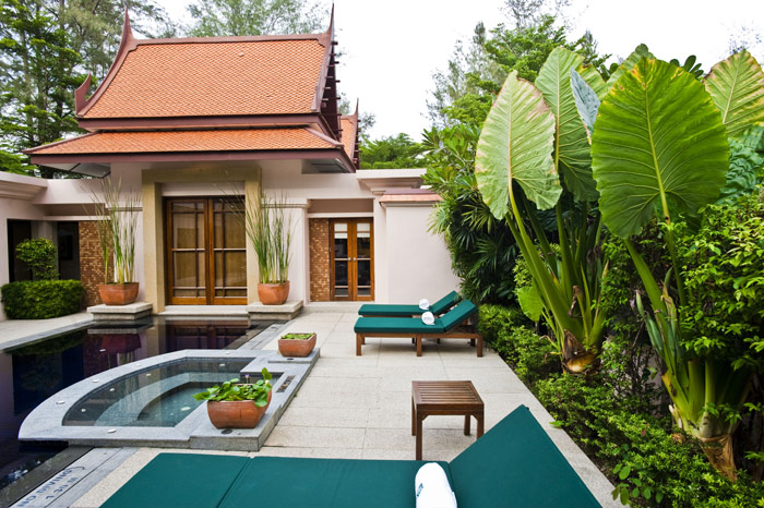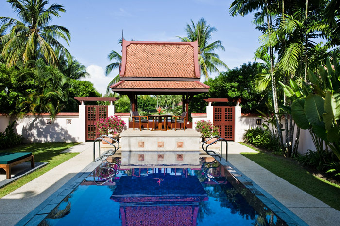 Этот отель, пожалуй, самый шикарный в лагуне, в нем нет номеров обычных категорий, только виллы с частными садами и ваннами под открытым небом. Все виллы оформлены в традиционном тайском стиле.