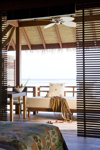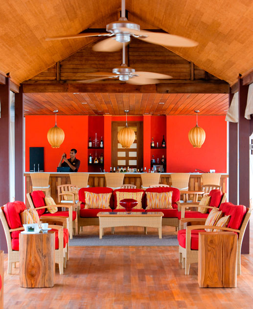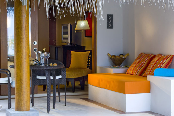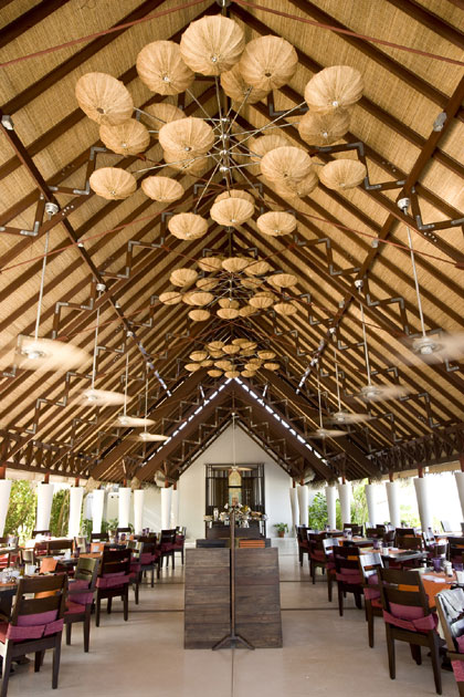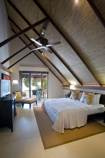 Отель состоит из комплекса индивидуальных береговых вилл и бунгало, и водных бунгало, стоящих на сваях над лазурными водами лагуны, соединенных с берегом и друг с другом деревянным пешеходным мостком. Все бунгало построены исключительно из природных материалов: крытые соломой и пальмовыми листьями крыши, деревянные стены и потолки, ковры ручной работы – именно так выглядели традиционные поселения на Мальдивах.