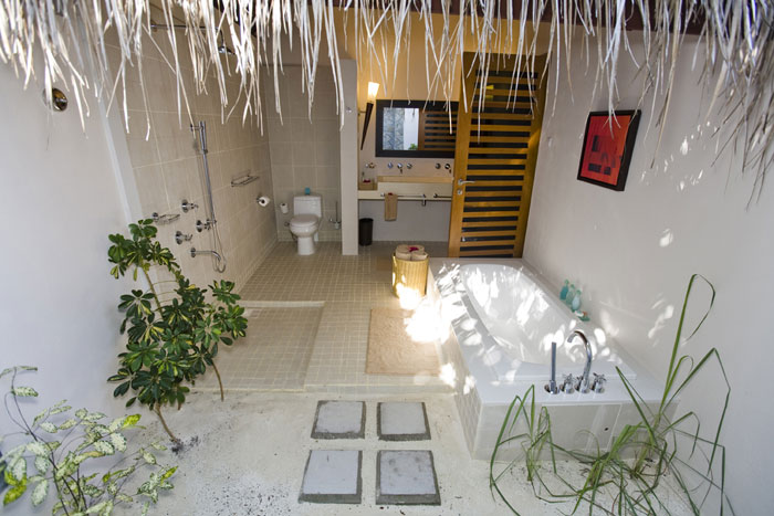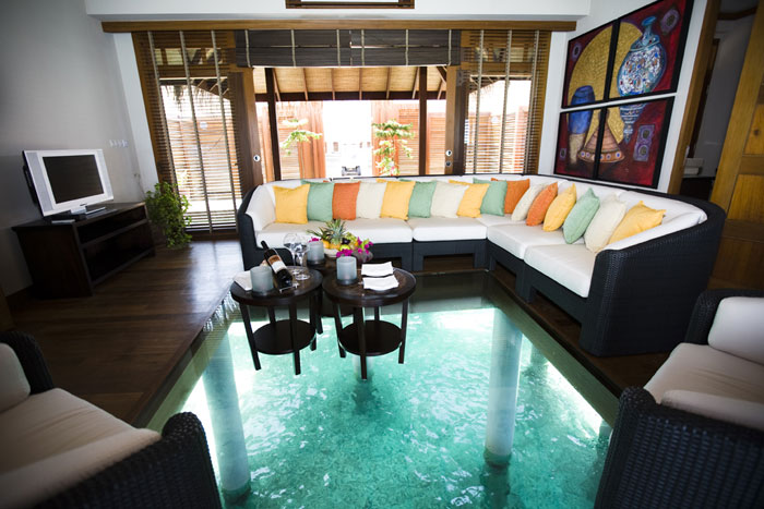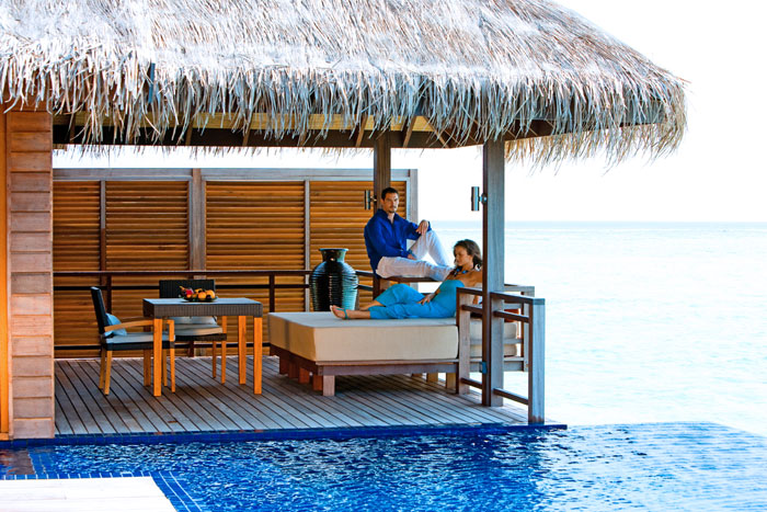 1 Water Treatment Villa (56 кв.м) - роскошно обставленные просторные водные павильоны для Spa-процедур на сваях над лагуной, оборудованные открытой террасой с лежаками и душем под открытым небом, паровым душем, отдельным туалетом и джакузи. В полу комнат для проведения массажа и Spa-процедур имеется прозрачная панель, сквозь которую можно наблюдать за жизнью многочисленных подводных обитателей лагуны.
