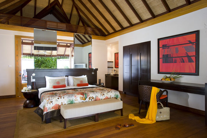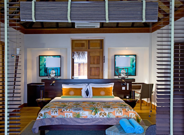 На вилле 2 спальни, отдельная гостиная, столовая, мини-кухня, роскошная ванная комната с джакузи и отдельным душем, душ под открытым небом, терраса с солярием, зоной отдыха и спуском в воды лагуны, персональный бассейн. Гостям этой виллы предоставляются услуги персонального камердинера.