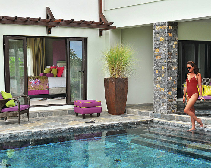 На территория отеля разбит великолепный тропический сад, простирающийся до самого пляжа с белым песком. Интерьеры гостиницы выполнены из натурального дерева и камня, в мягких естественных тонах. В экзотическим декоре вилл слились воедино маврикийские традиции и современность.