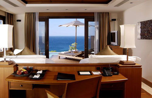 Во всех номерах – элегантные интерьеры с отделкой из тикового дерева, мягким освещением, удобной мебелью, изысканными украшениями в тайском стиле, с уютных террас с бассейнами открывается изумительный вид на сверкающую гладь залива.